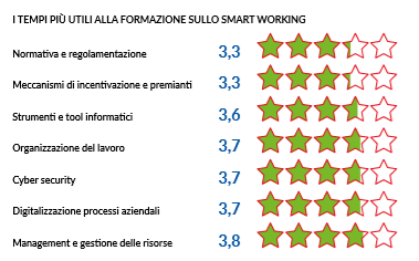 Su una scala da 1 a 5 il livello di utilità della formazione sul lavoro agile dichiarato dai rispondenti è stato in media del 3,6.